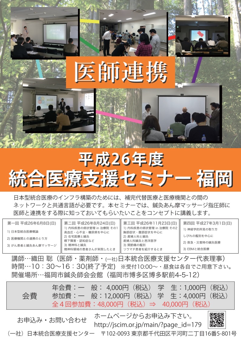 申込み: 日本統合医療支援センター WEB申し込み http://jscim.or.jp/main/?page_id=179