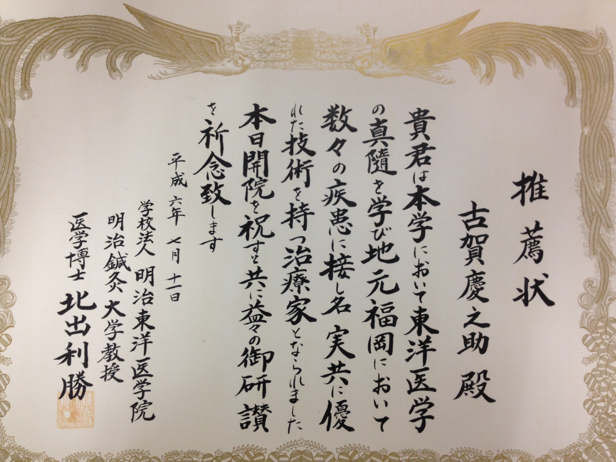 当院に来られた方はご存知と思いますが当院の待合室には推薦状やら感謝状やら