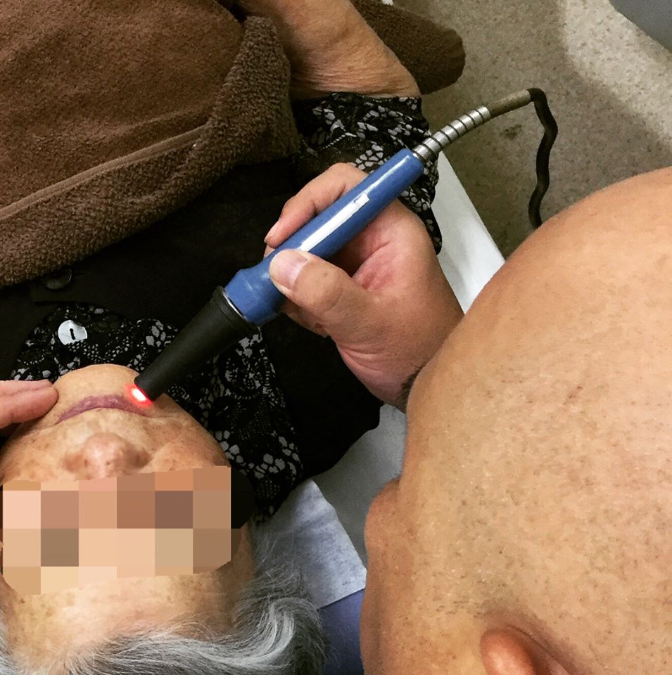 刺鍼の後は顔面部ですので赤外線レーザーでお灸の代わりの温熱治療で仕上げです![]()