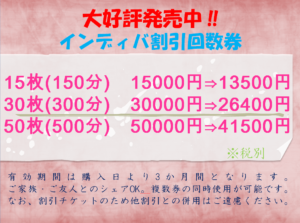 回数券が非常にお得です。更にインディバ回数券も好評発売中です。