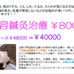 2018年7月14日/ 最終更新日時 : 2018年7月14日 美魔女クリエイター美容鍼灸ブログ心身から健康で美しく! 顔のほうれい線、肌のくすみ、シミ、しわ、たるみ、むくみが気になる方はもちろん、 ニキビや顔の赤み、肌質が安定しないなどのお悩みが多い10代、20代の方にも美容鍼灸治療はおすすめです!! &nb […]